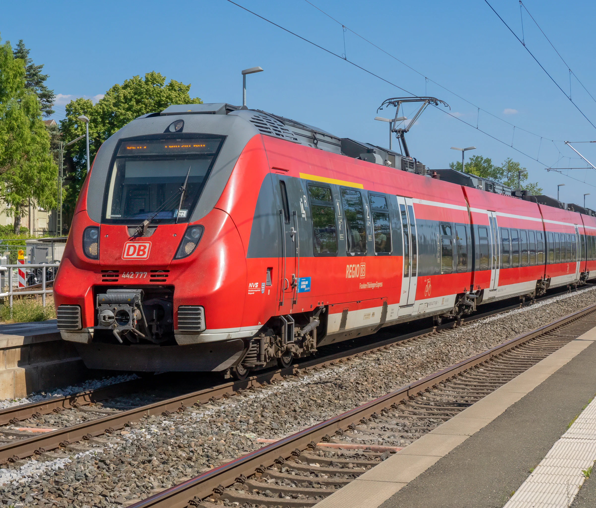 英语:Station in Buttenheim (Altendorf) with S-Bahn train. Direction Bamberg. 模板:De